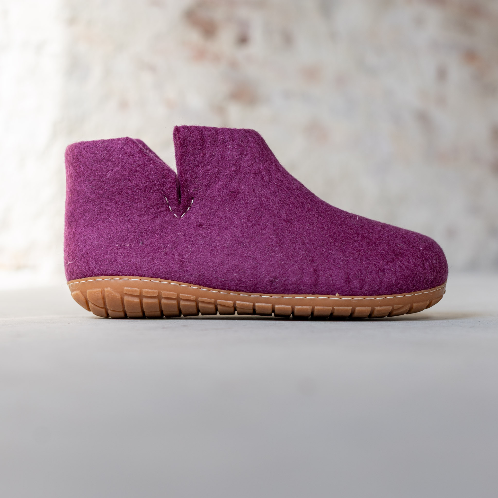 Vilten Hoge Dames Pantoffel Jado - Bosbes - Harde Zool - Maten 36 t/m 41. Comfortabele hoge damespantoffels van wolvilt met stevige rubberen zool, ideaal voor binnen en korte buitenactiviteiten. Biedt extra steun, warmte en stabiliteit bij dagelijks gebruik.