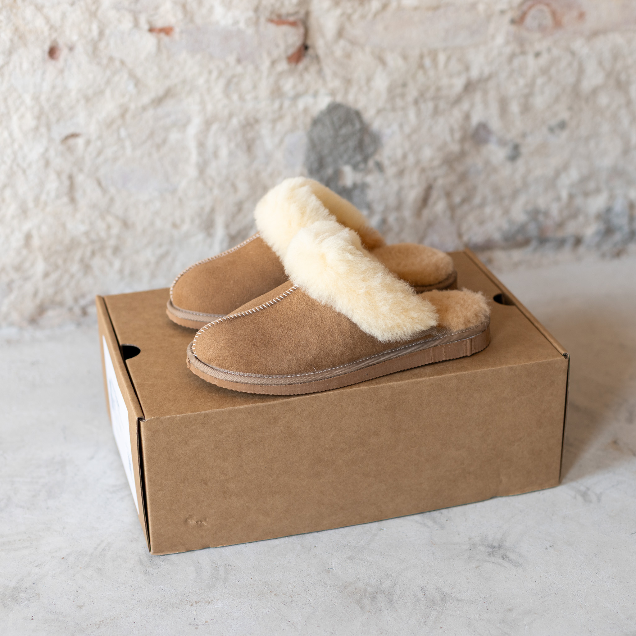 Van het kleuren van de vacht tot het laatste stiksel: alles gebeurt in eigen atelier. Dankzij de stevige rubberen zool zijn ze perfect voor dagelijks gebruik, zowel binnen als even buiten. De vacht is warm in de winter, verkoelend in de zomer en vormt zich naar je voeten voor ultiem comfort.