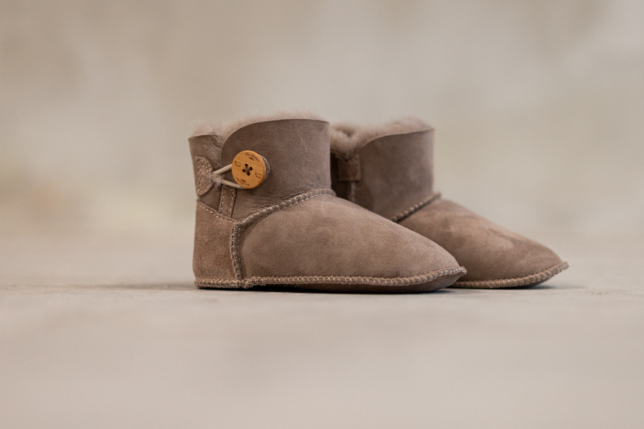 Fijne Kinderpantoffels gemaakt van soepel suéde met een voering van schapenwol.