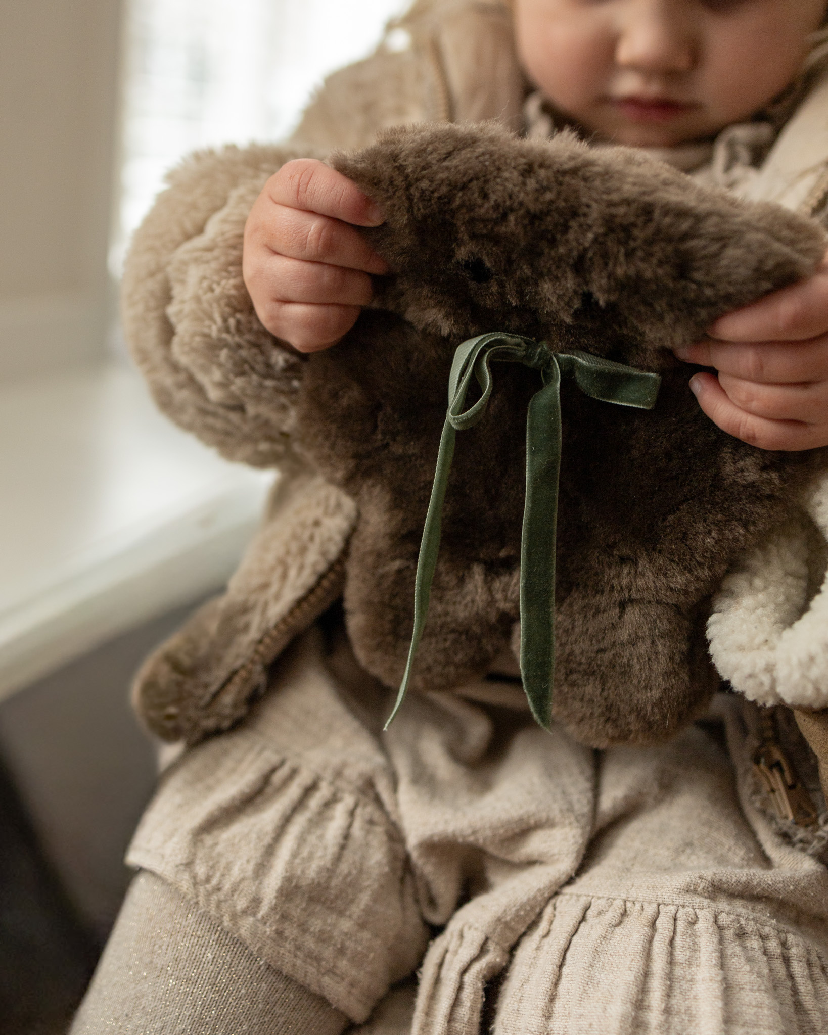 Daarnaast is de beer er in twee formaten. De kleine variant is het perfecte formaat voor kleine handjes, ideaal voor in de wieg of de wandelwagen. Mag het iets robuuster? De grote variant is een prachtige blikvanger in de kinderkamer en een stevig knuffelmaatje voor peuters en kleuters die overal mee naartoe gesleept wil worden.