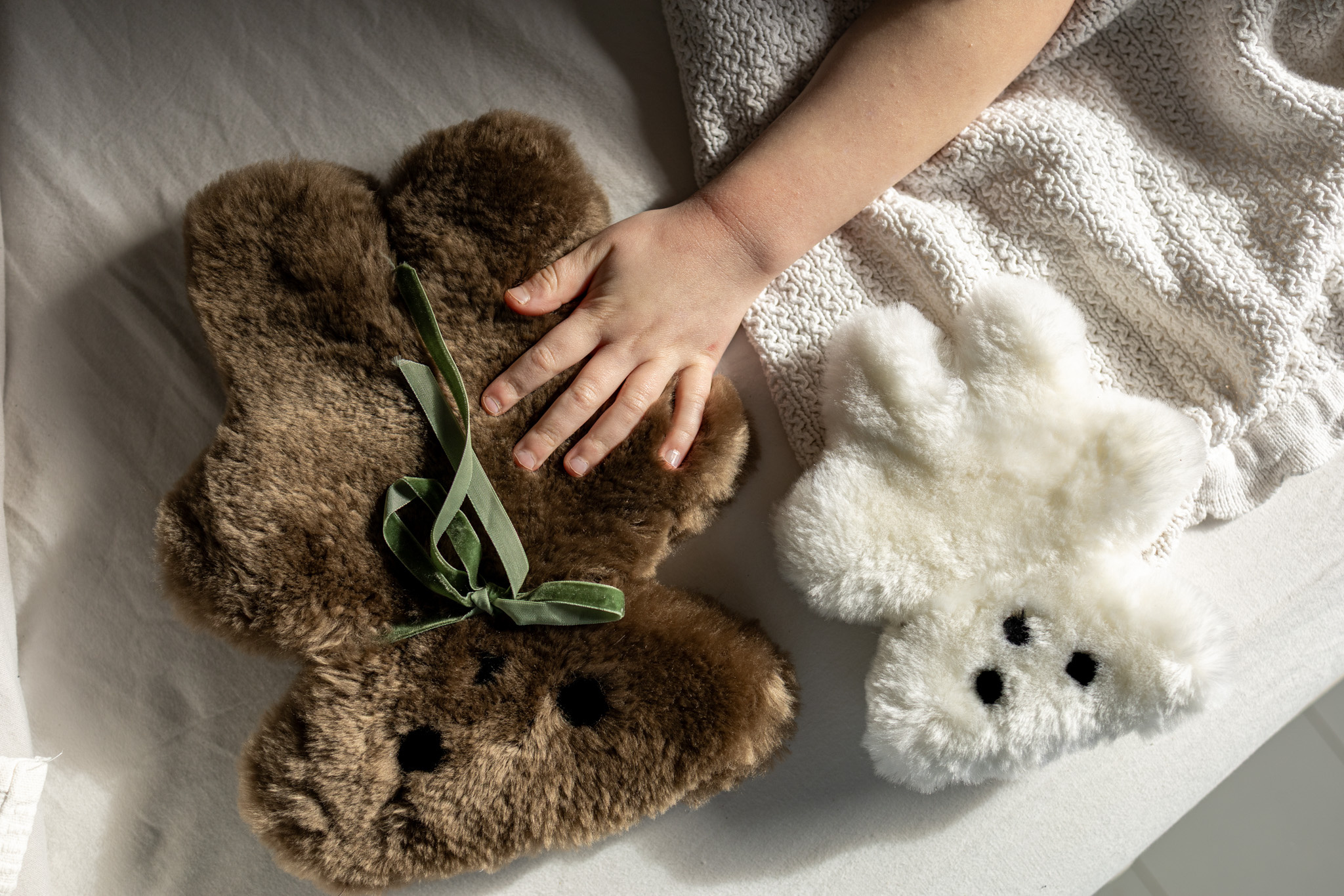 Omdat wol een natuurproduct is, is geen enkele vacht precies hetzelfde. Dit betekent dat elke Buurtje Beer zijn eigen unieke karakter en uitstraling heeft. Om perfect aan te sluiten bij jouw wensen of de stijl van de kinderkamer, is de collectie verkrijgbaar in verschillende uitvoeringen. Je hebt de keuze uit het tijdloze Natuurlijk Wit of een warme Kastanjebruine tint.
