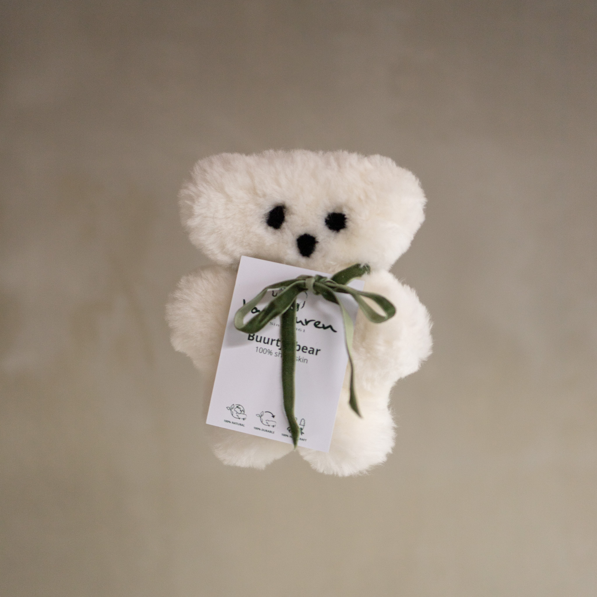 Maak kennis met Buurtje Beer: niet zomaar een knuffel, maar een vriend voor het leven. Gemaakt van de allerzachtste Nieuw-Zeelandse Merino schapenvacht, biedt dit beertje een natuurlijke warmte en geborgenheid die geen enkele synthetische knuffel kan evenaren. Of hij nu waakt over de babykamer of troost biedt op de bank, Buurtje Beer is een toonbeeld van luxe, natuur en Nederlands erfgoed.