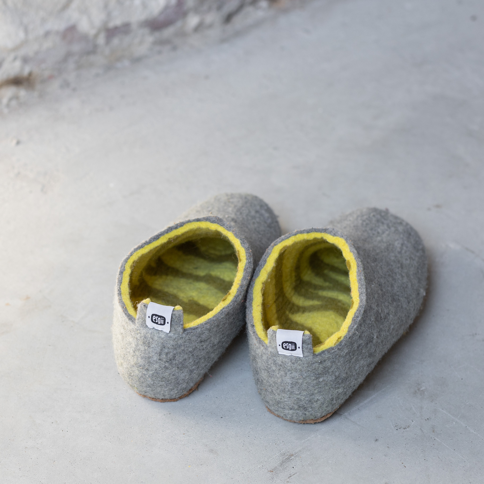 De sloffen van de maker MIM. die je bij esgii kunt kopen worden gemaakt op basis van Fair Trade. Dat betekent dat de makers van de schapenwollen sloffen een eerlijke beloning krijgen voor hun producten. De producten worden van vilt gemaakt en geproduceerd in Mongolië. Esgii is het Mongoolse woord voor vilt. De warme grijze pantoffels en accessoires zijn duurzaam en worden met de hand gemaakt. Het maken van deze producten zorgt voor werkgelegenheid en inkomsten onder de Mongoolse bevolking. Deze wollen sloffen zitten dus niet alleen heel lekker, je draagt ook een steentje bij aan de wereld!