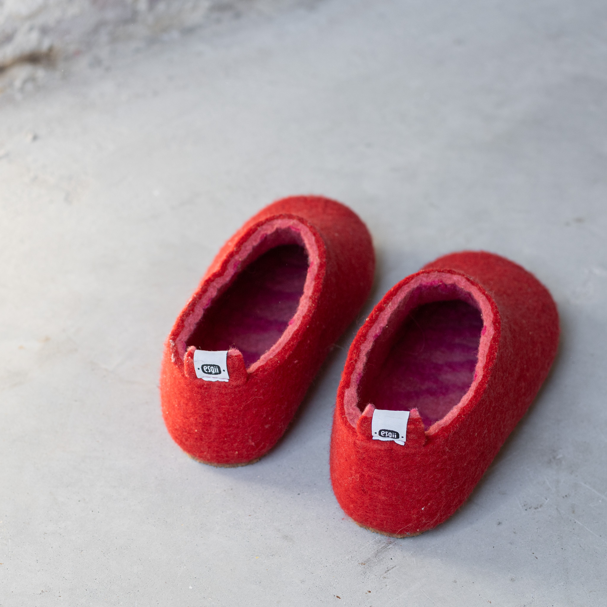 De sloffen van de maker MIM. die je bij esgii kunt kopen worden gemaakt op basis van Fair Trade. Dat betekent dat de makers van de schapenwollen sloffen een eerlijke beloning krijgen voor hun producten. De producten worden van vilt gemaakt en geproduceerd in Mongolië. Esgii is het Mongoolse woord voor vilt. De warme rode pantoffels en accessoires zijn duurzaam en worden met de hand gemaakt. Het maken van deze producten zorgt voor werkgelegenheid en inkomsten onder de Mongoolse bevolking. Deze wollen sloffen zitten dus niet alleen heel lekker, je draagt ook een steentje bij aan de wereld!