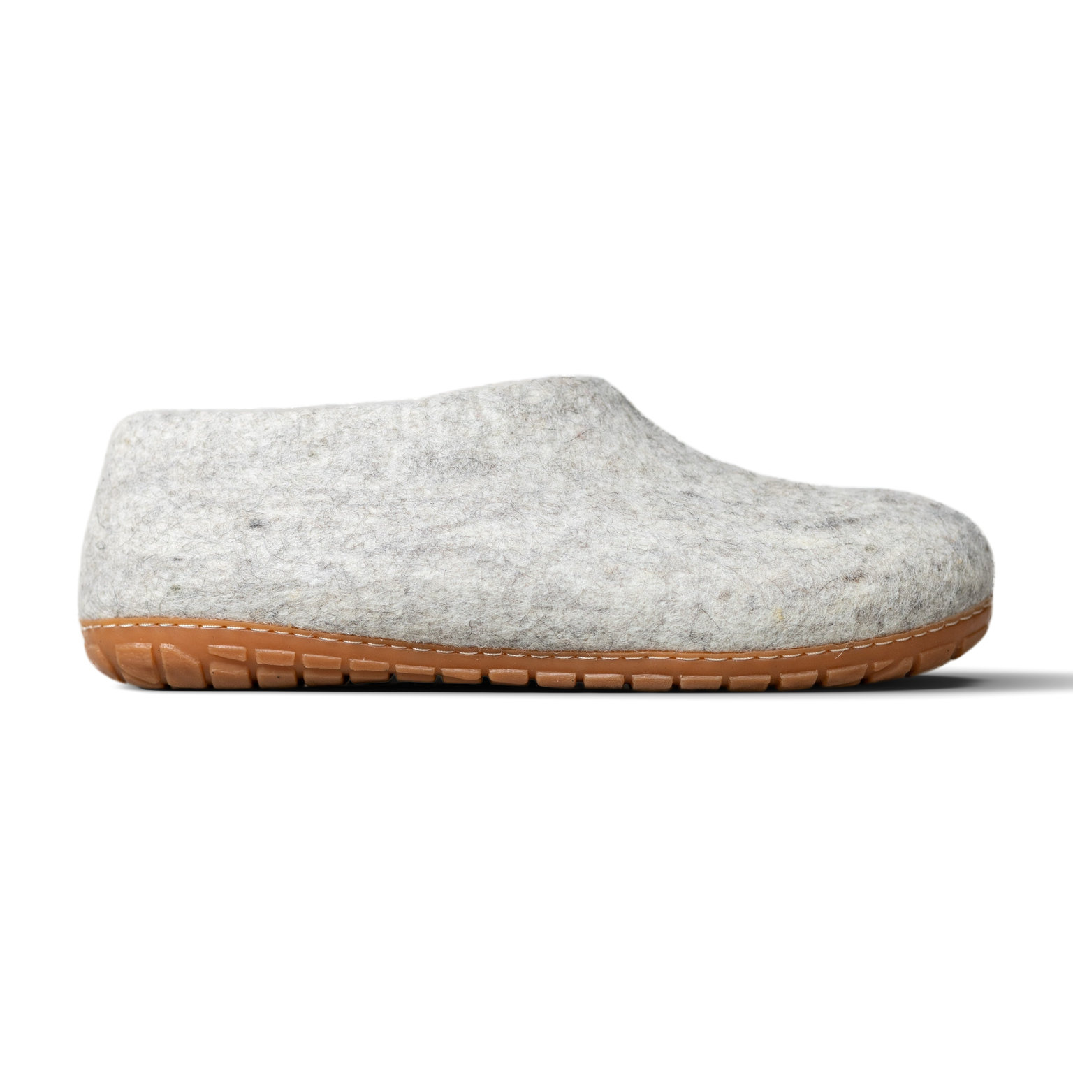 De Vilten Heren Pantoffel Ravi in lichtgrijs met rubberen zool biedt stevige ondersteuning en warmte, geschikt voor binnen en buiten. Verkrijgbaar in maat 42 t/m 46.