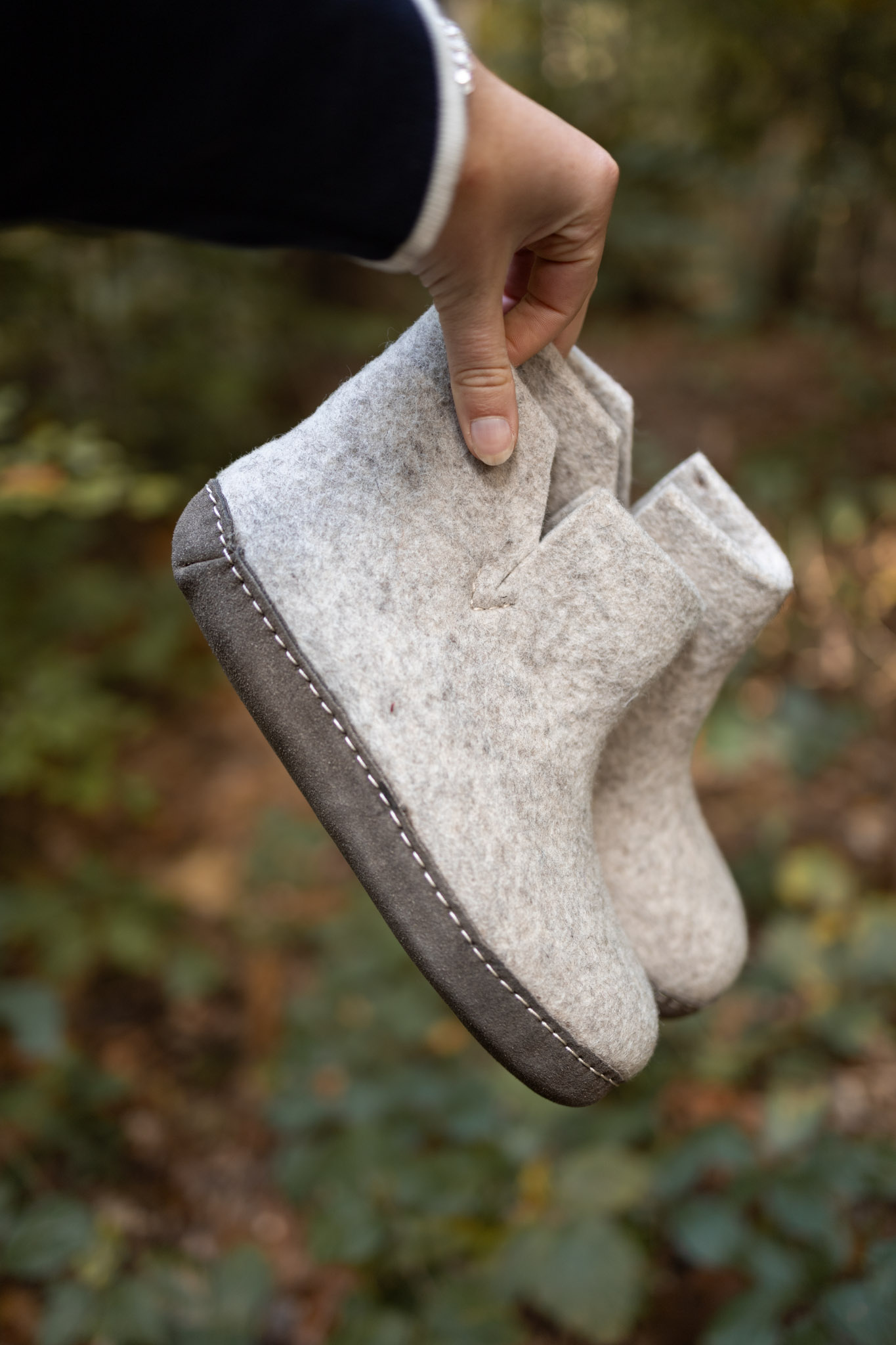 Vilten Hoge Heren Pantoffel Jado - Lichtgrijs - Zachte Zool - Maten 42 t/m 46. Hoog model herenslippers van wolvilt met zachte zool, ontworpen voor optimaal comfort, warmte en ondersteuning binnenshuis. Biedt demping en stabiliteit voor dagelijks gebruik.