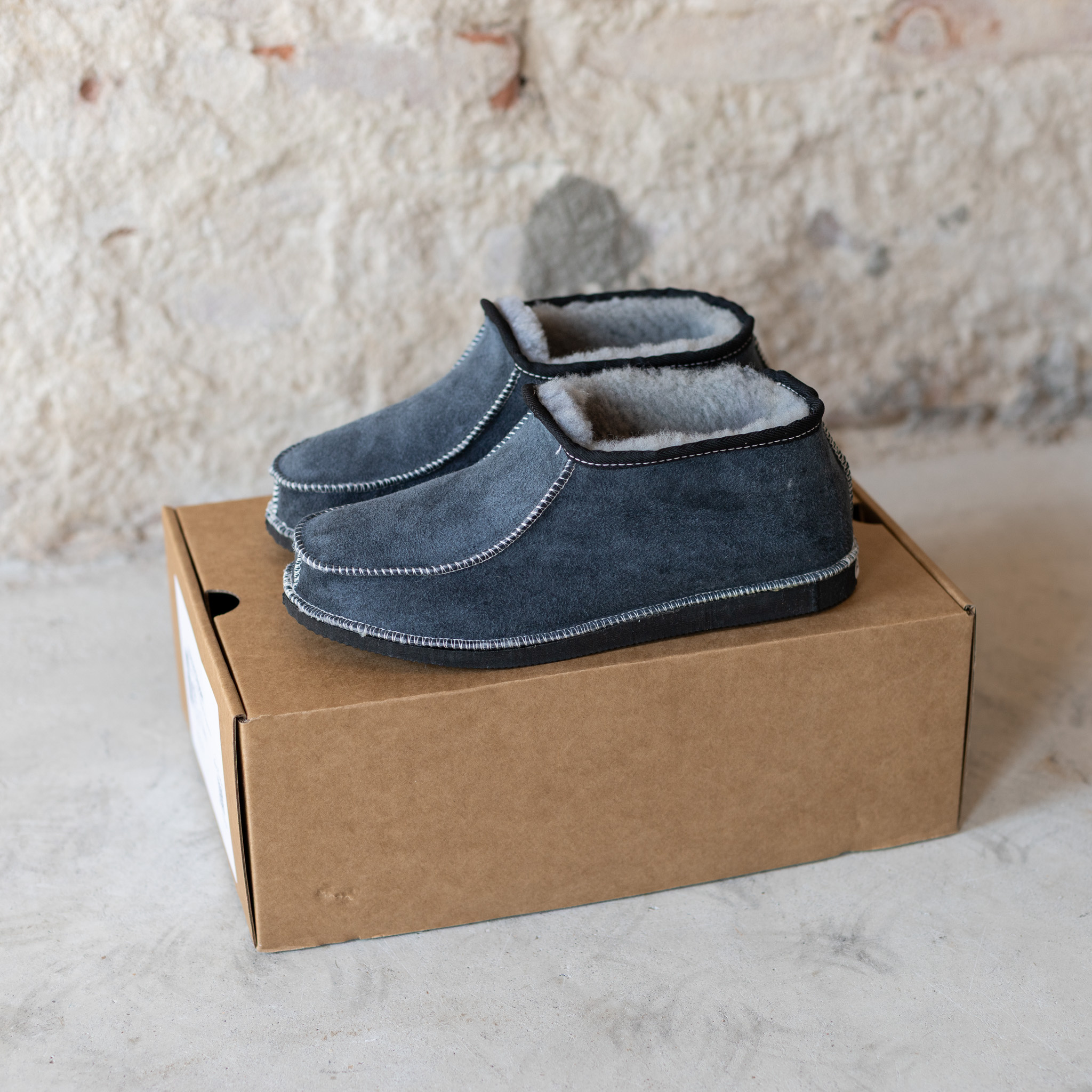 Van het kleuren van de vacht tot het laatste stiksel: alles gebeurt in eigen atelier. Dankzij de stevige rubberen zool zijn ze perfect voor dagelijks gebruik, zowel binnen als even buiten. De vacht is warm in de winter, verkoelend in de zomer en vormt zich naar je voeten voor ultiem comfort.