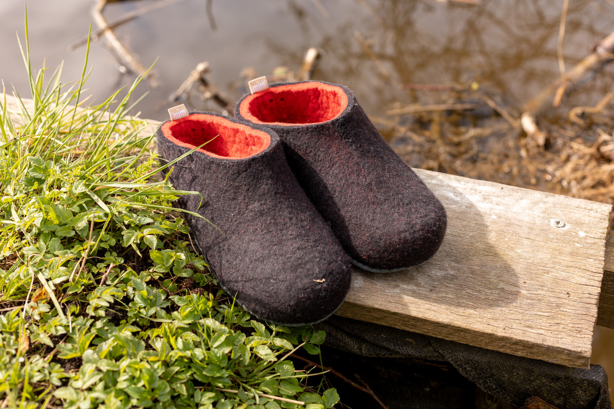 Deze sloffen zijn gemaakt door vrouwen van MIM. in de Gobi-regio in Mongolië. Zij maken ongeveer 2 paar sloffen per dag. MIM wil vrouwen in staat stellen hun eigen levensomstandigheden en die van hun gemeenschap te verbeteren. Dat gebeurt door ze te leren hoe ze de natuurlijke producten kunnen maken en verwerken, en ze vervolgens een goede eerlijke prijs te geven voor de spullen die ze maken.